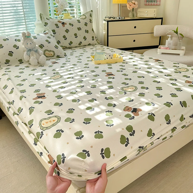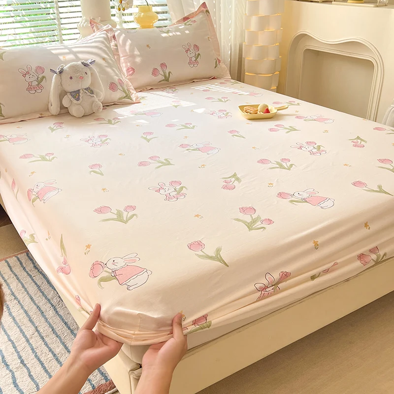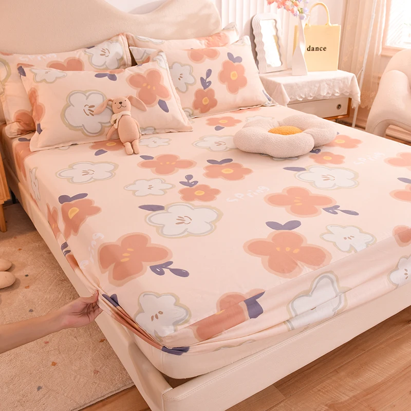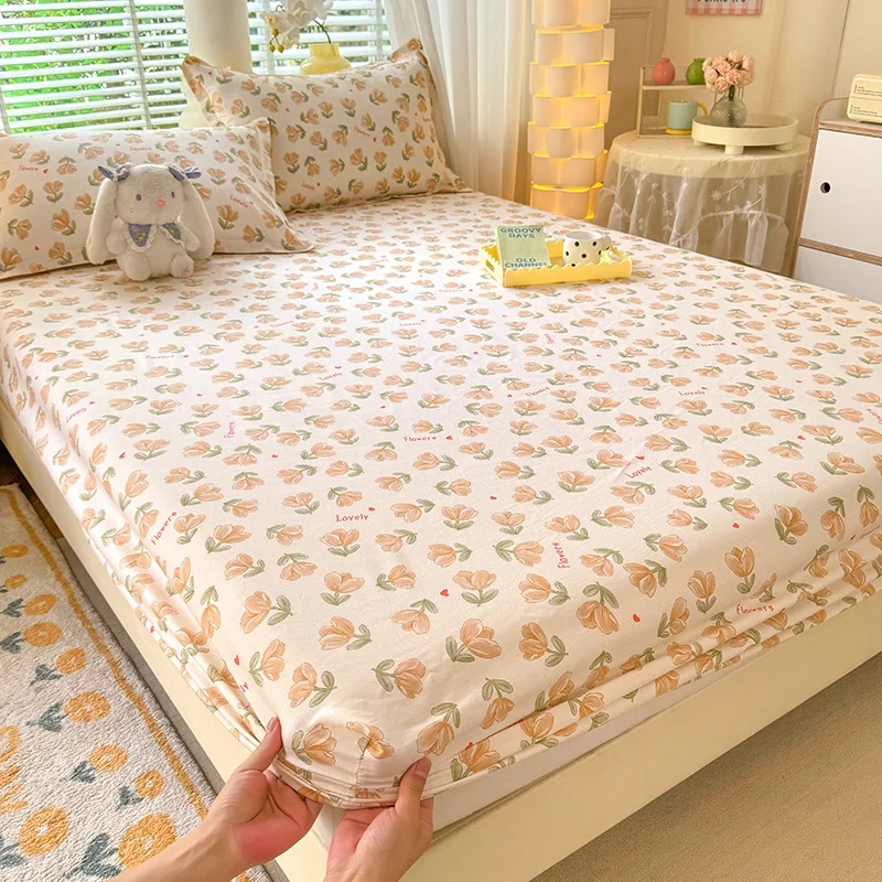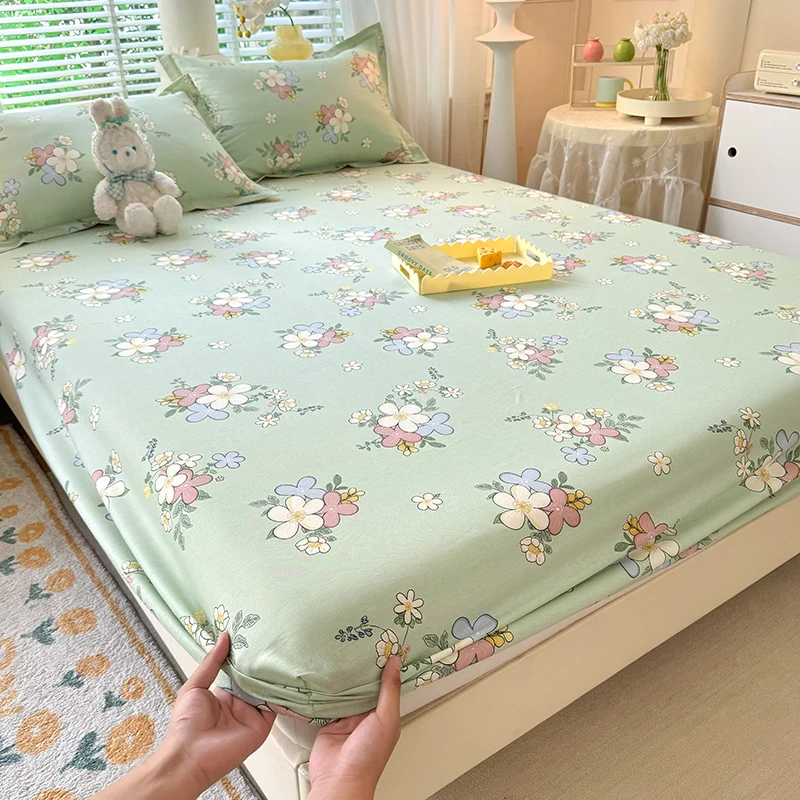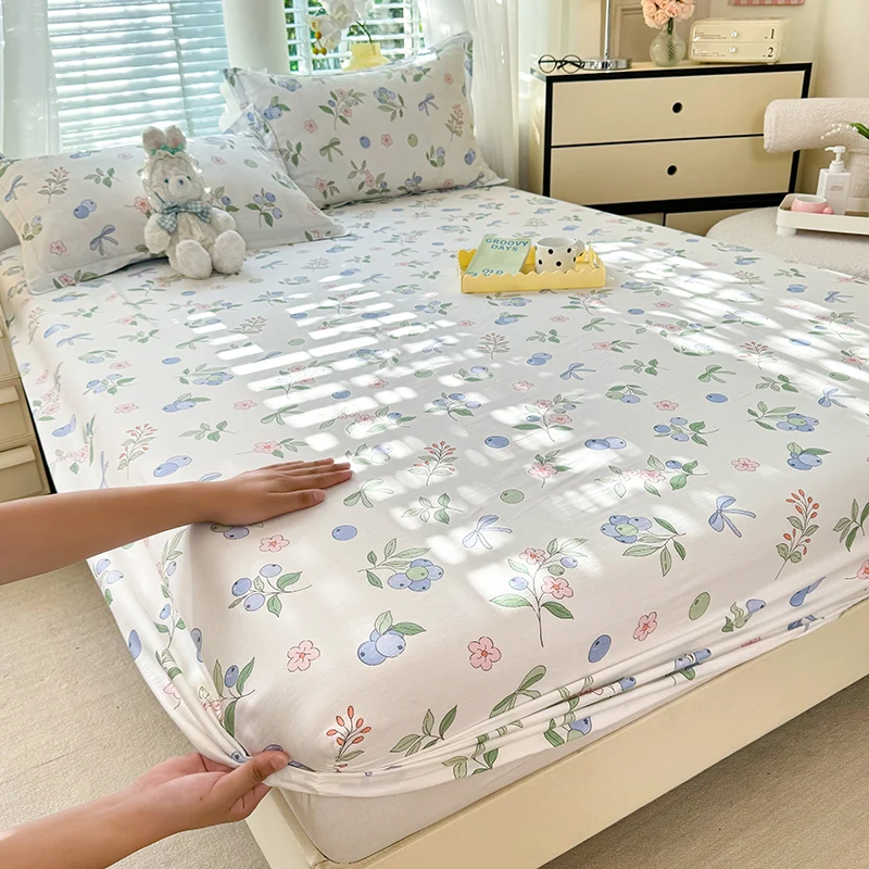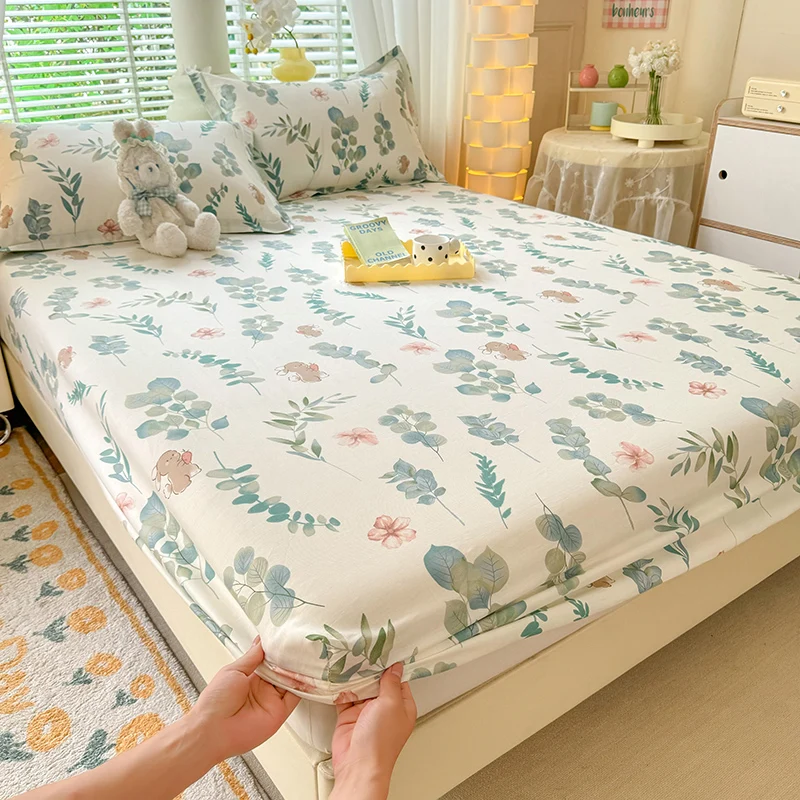 100% Cotton Fitted Sheet Floral Style Bedsheets Skin-friendly Elastic Bed Cover Home Bed Linen 1PCS (No Pillowcase)