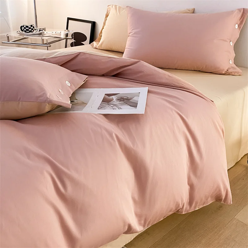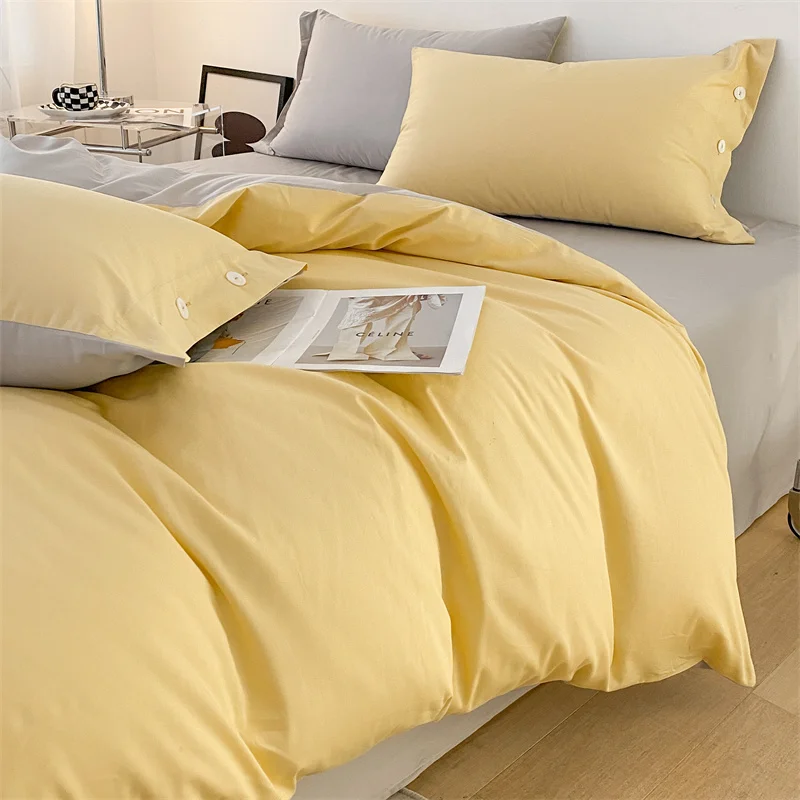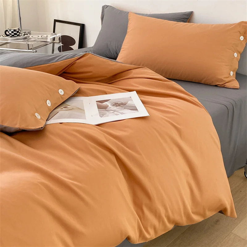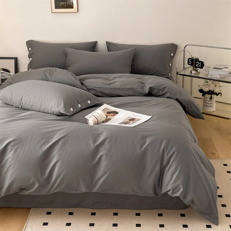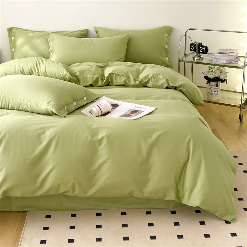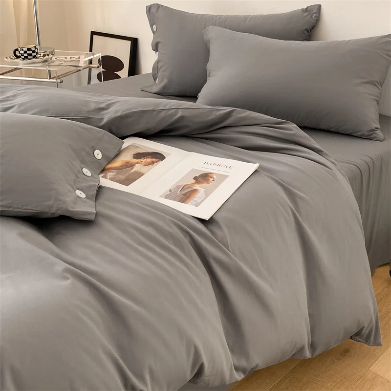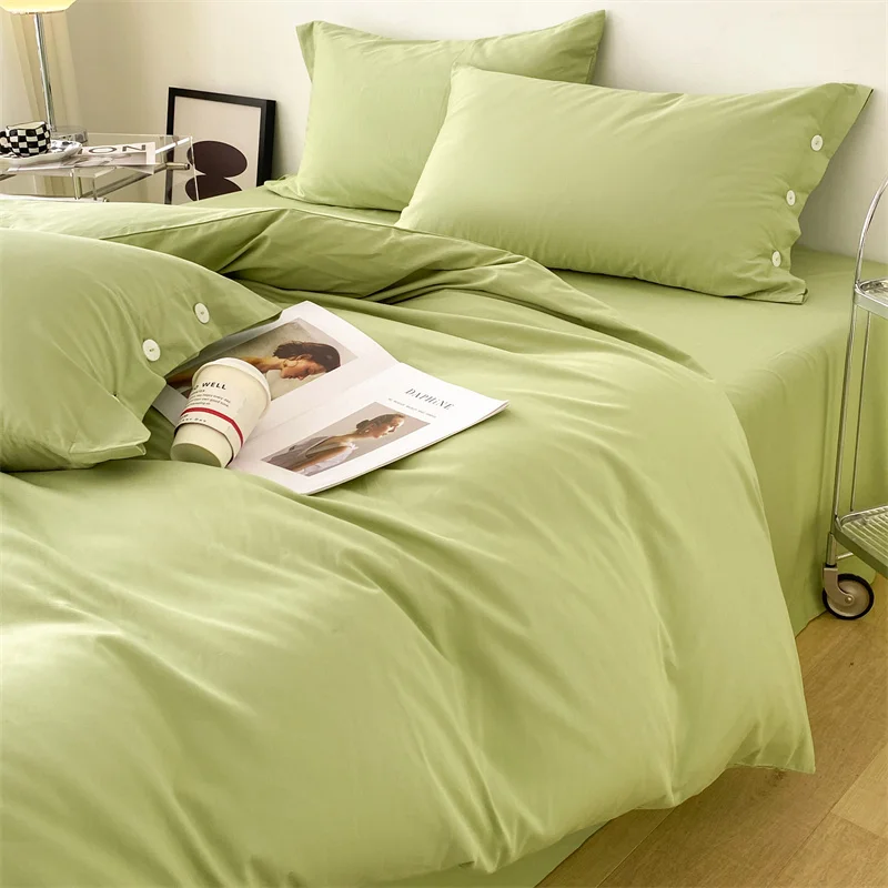 100% Cotton High-Quality Bedding Set,Solid Color Duvet Cover with Zipper, Pillow Sham with Button, Flat Sheet,Bed Set
