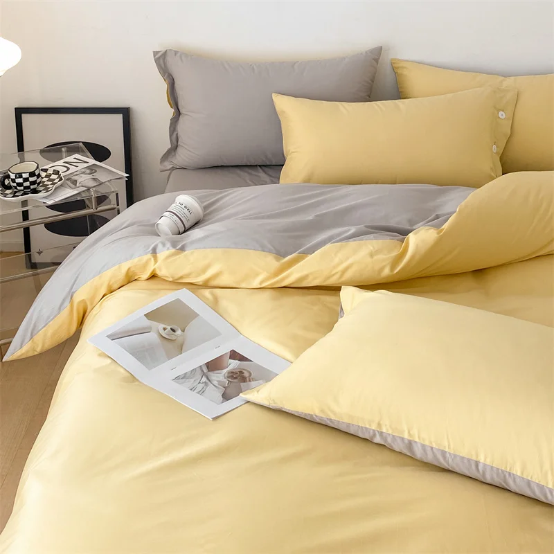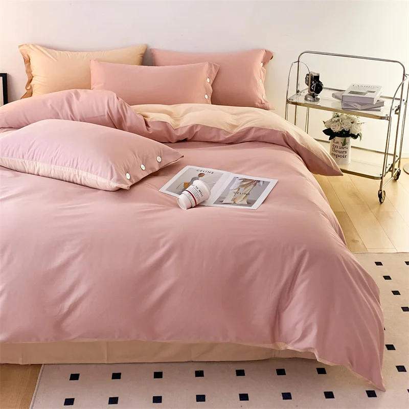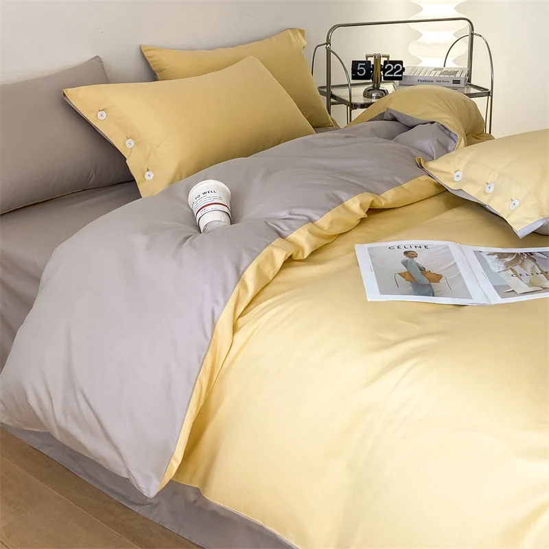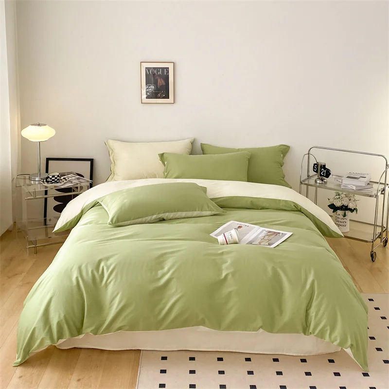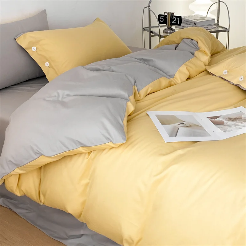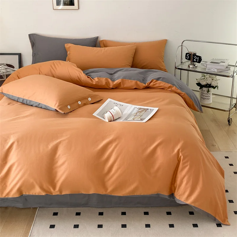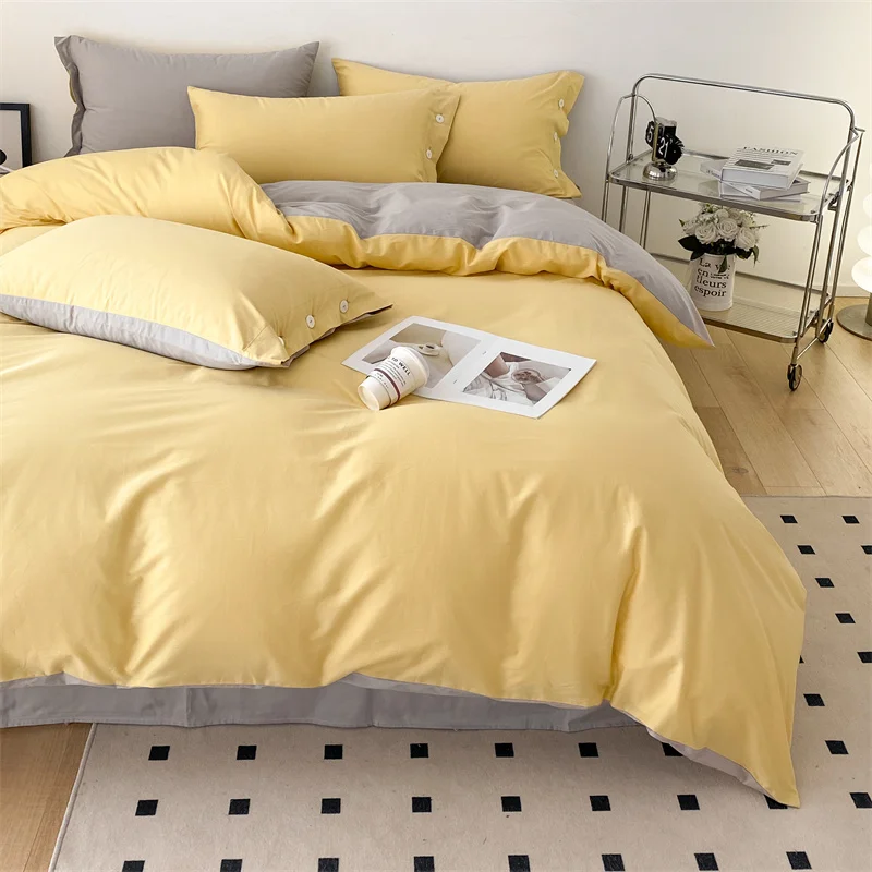 100% Cotton High-Quality Bedding Set,Solid Color Duvet Cover with Zipper, Pillow Sham with Button, Flat Sheet,Bed Set