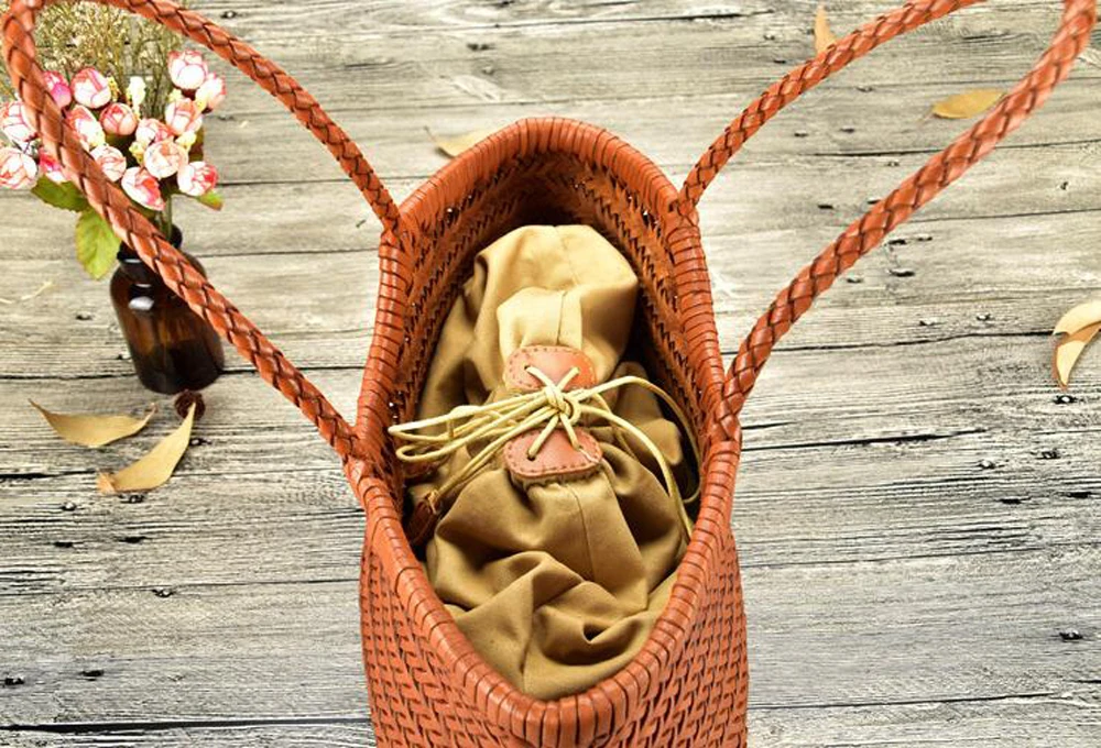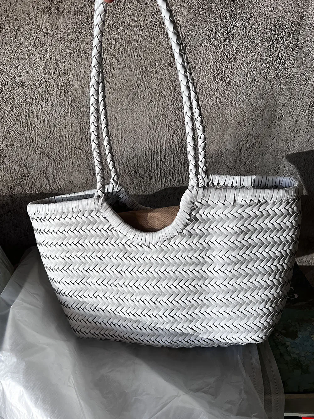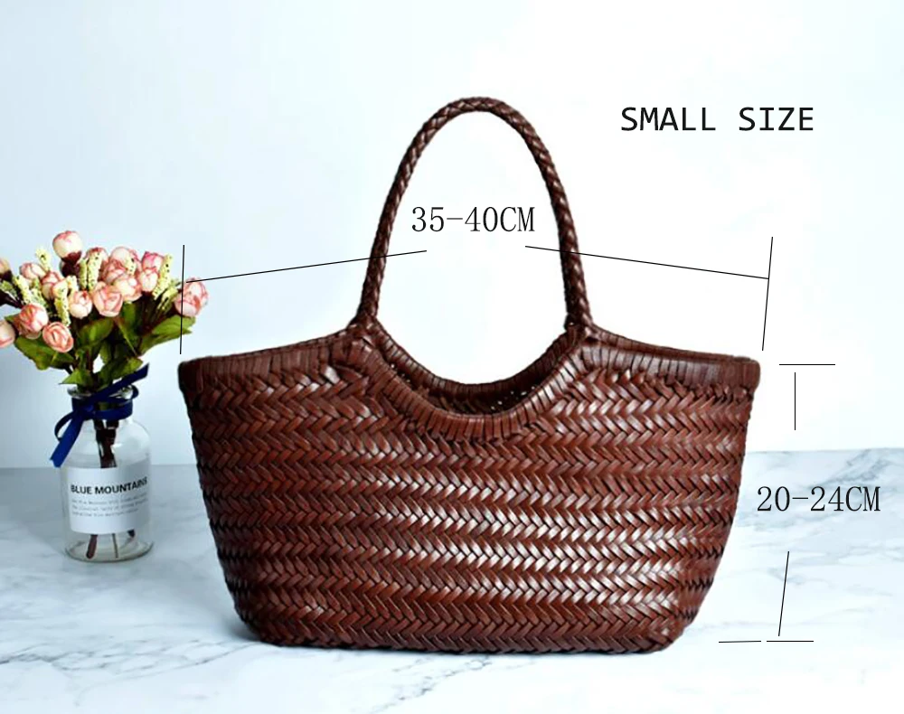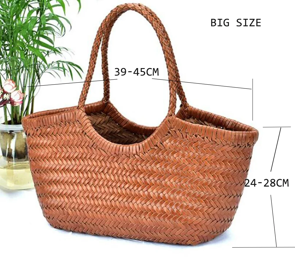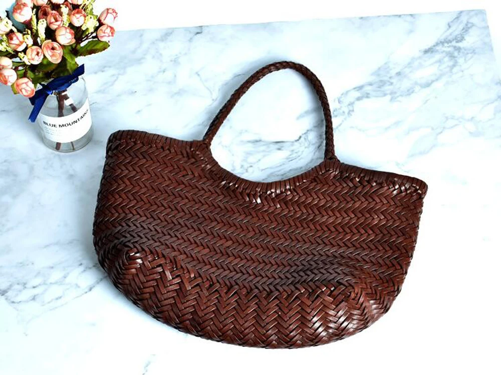100% Natural Cowhide Woven Handbag. Manual Weaving Hobos