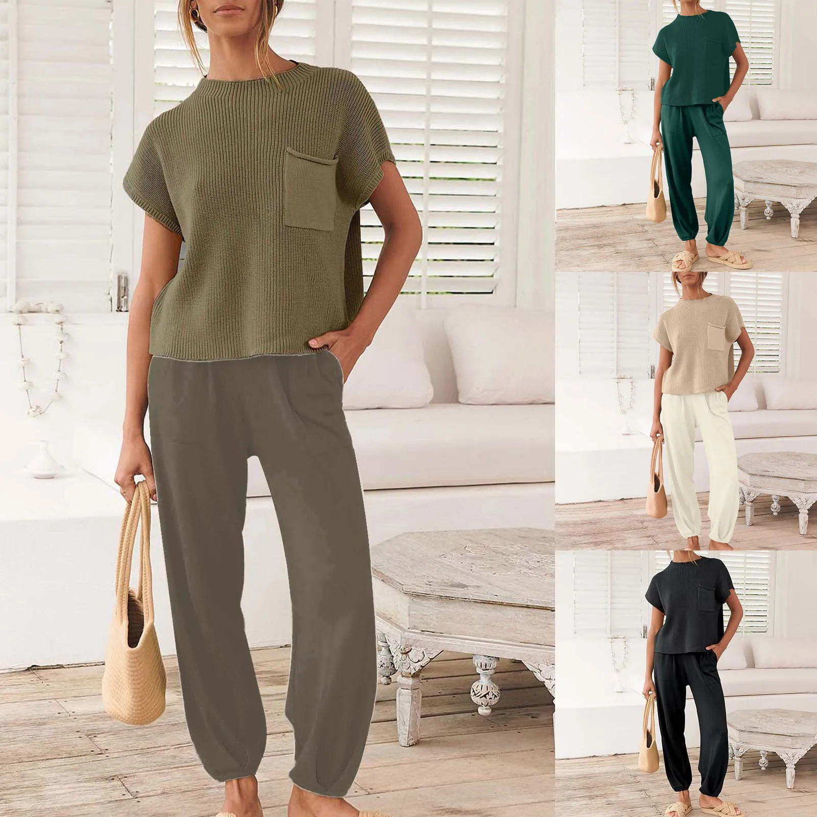 Women's Suit Summer Pocket Design Bundle Foot Suit Pantsuit