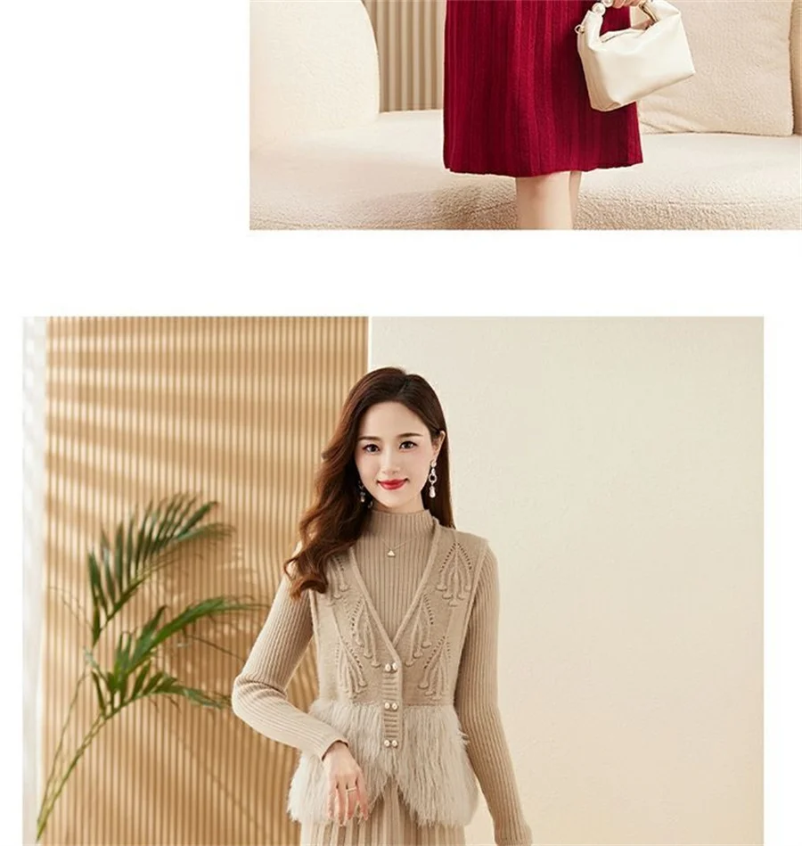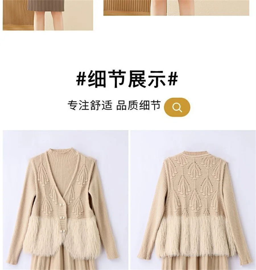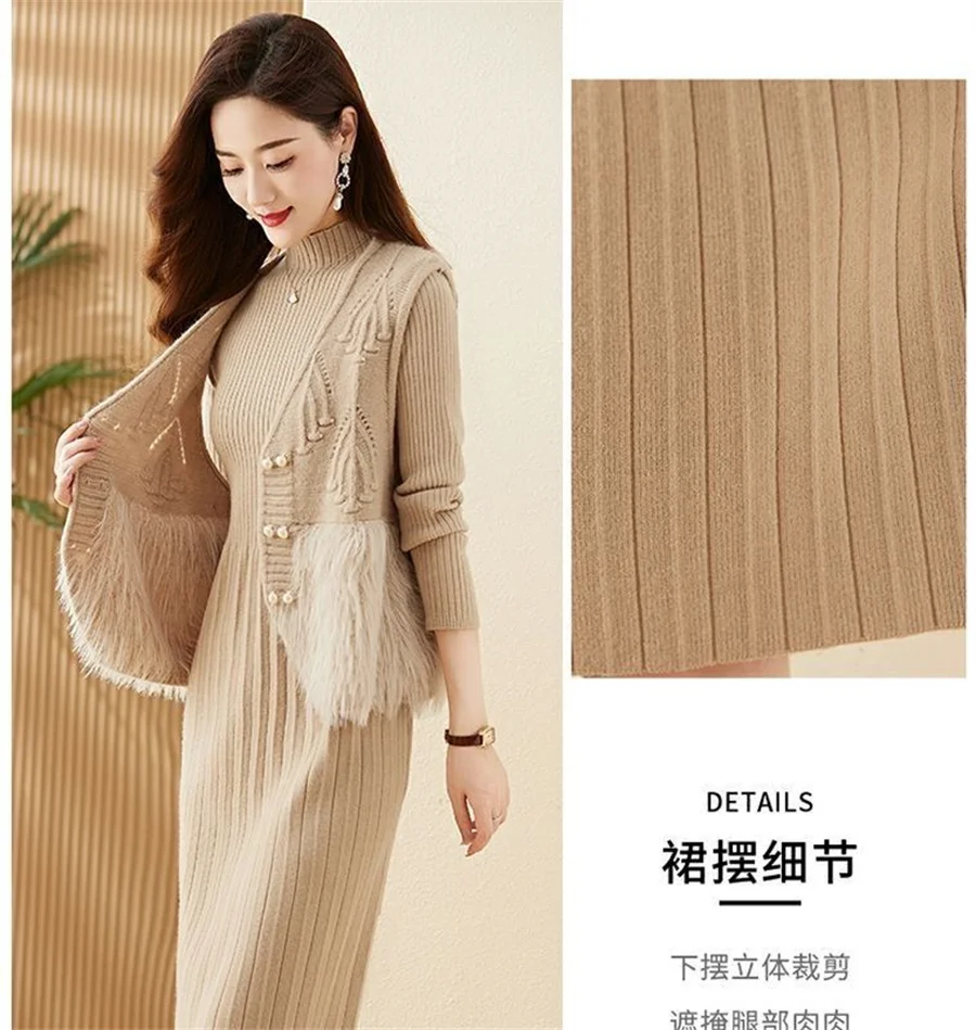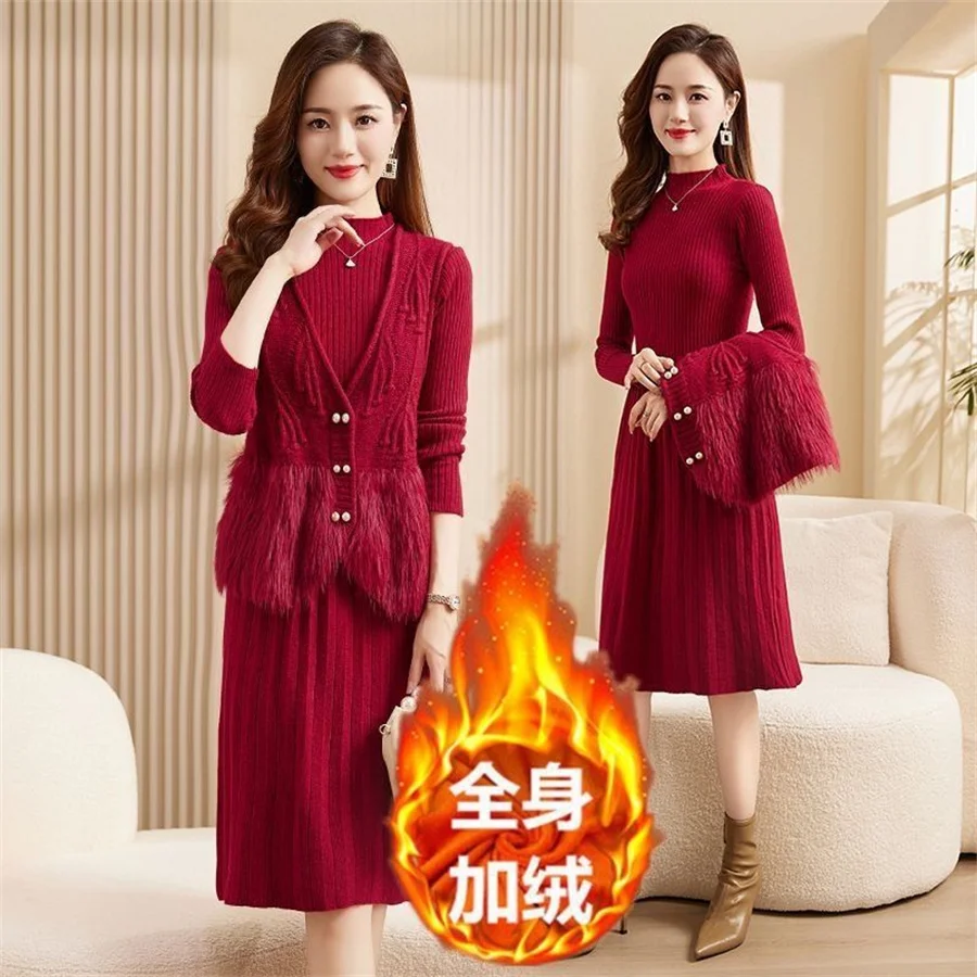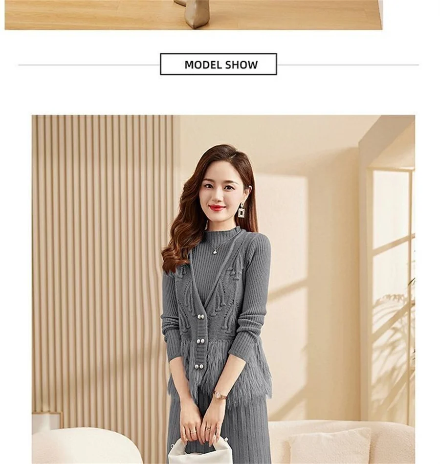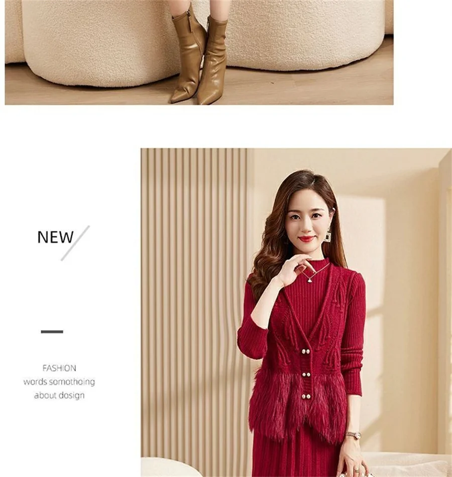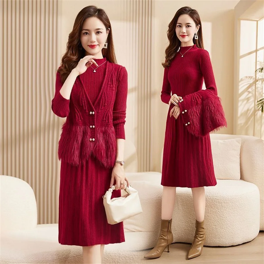 Autumn Winter Women's Knitted Sweater Skirt Two Piece Set Women Slim Fit Elegant Tops Female Suits Office Lady Knitting Outfit