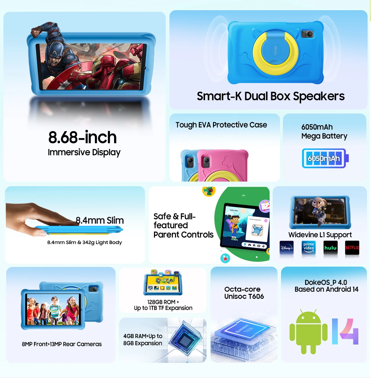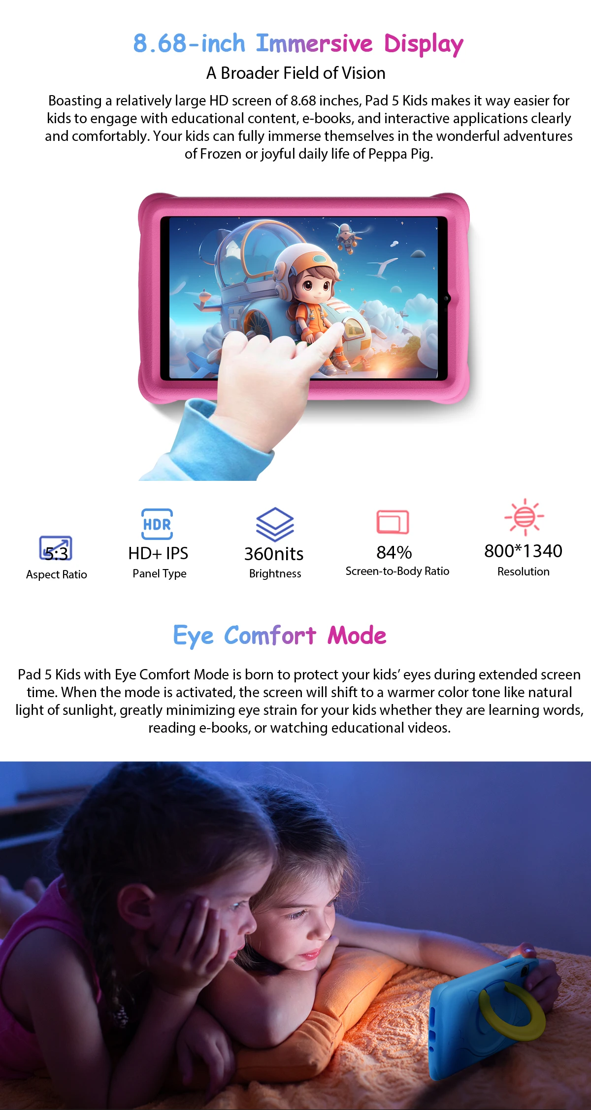 Blackview OSCAL Pad 5 Kids Tablet 8.68-inch Display T606 Octa-core Android 14 4GB 128GB 6050mAh Educational Software Installed