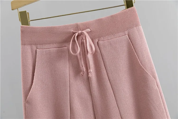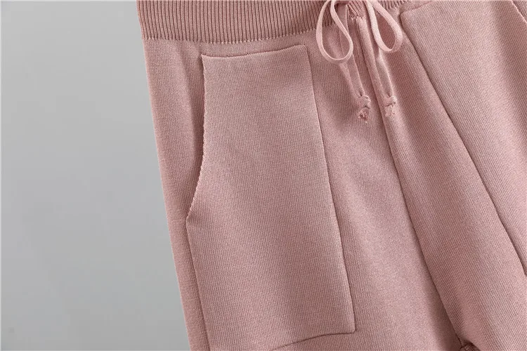 Fashion Women Sweater 2 Piece Sets Chic Knit Embroidery Bead Heartshape Pullovers Top + Spring Harem Pants Sport Tracksuits Suit