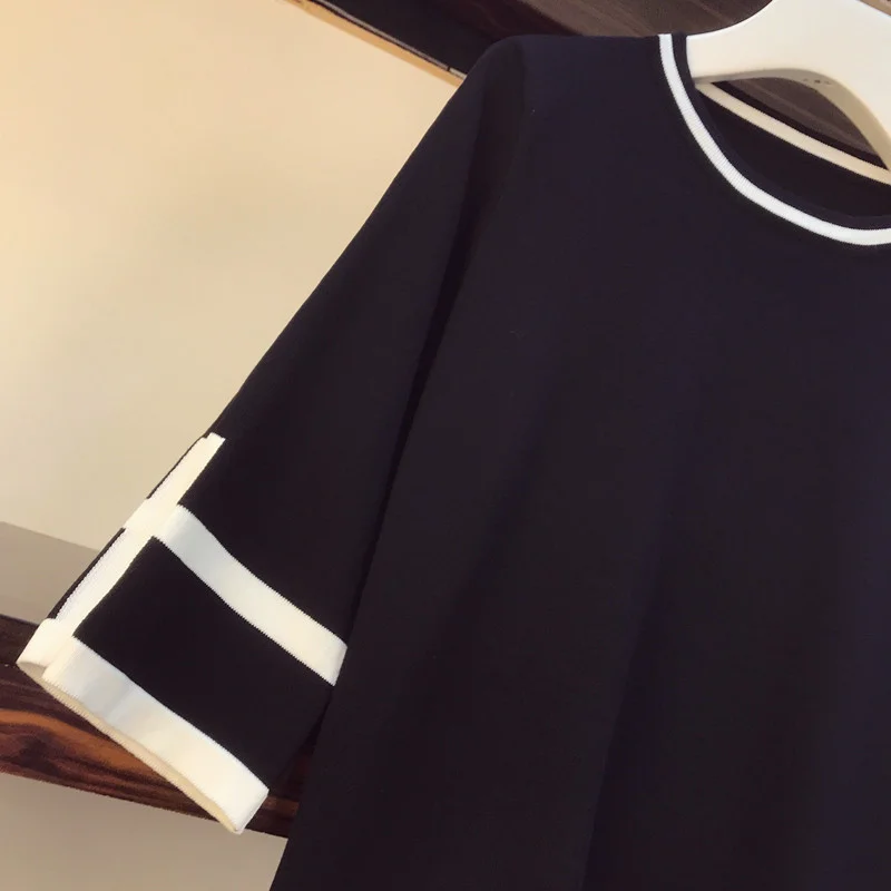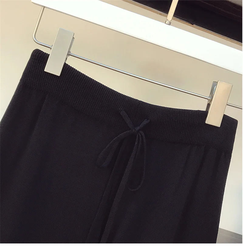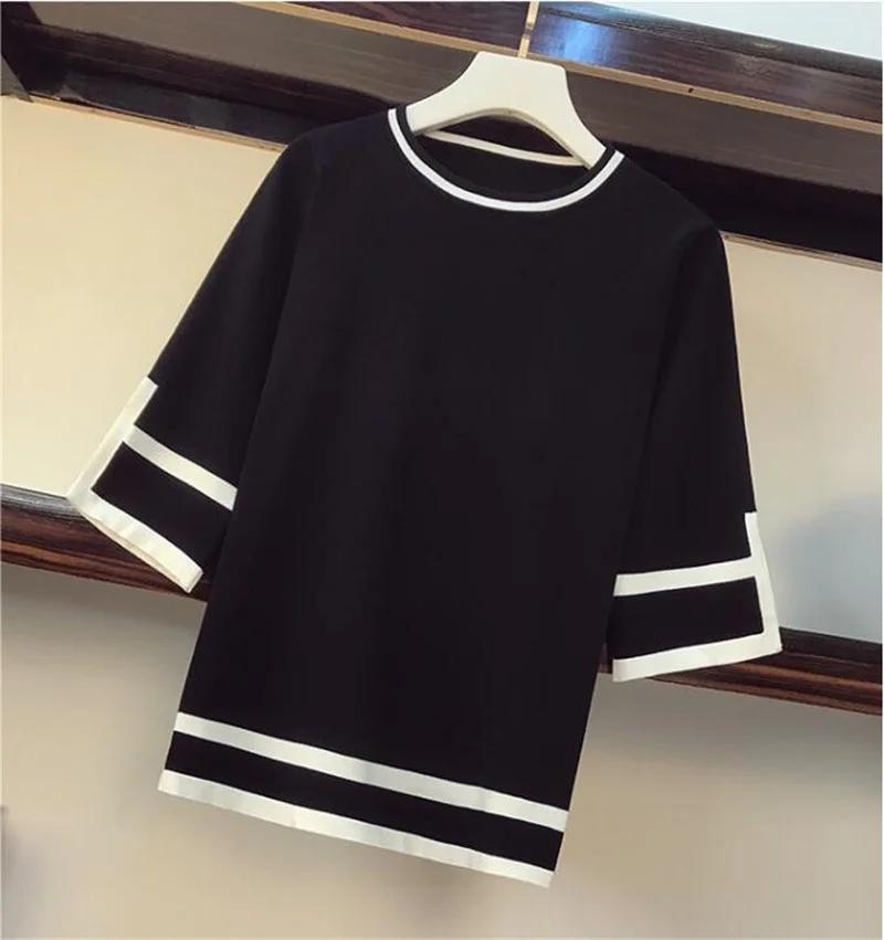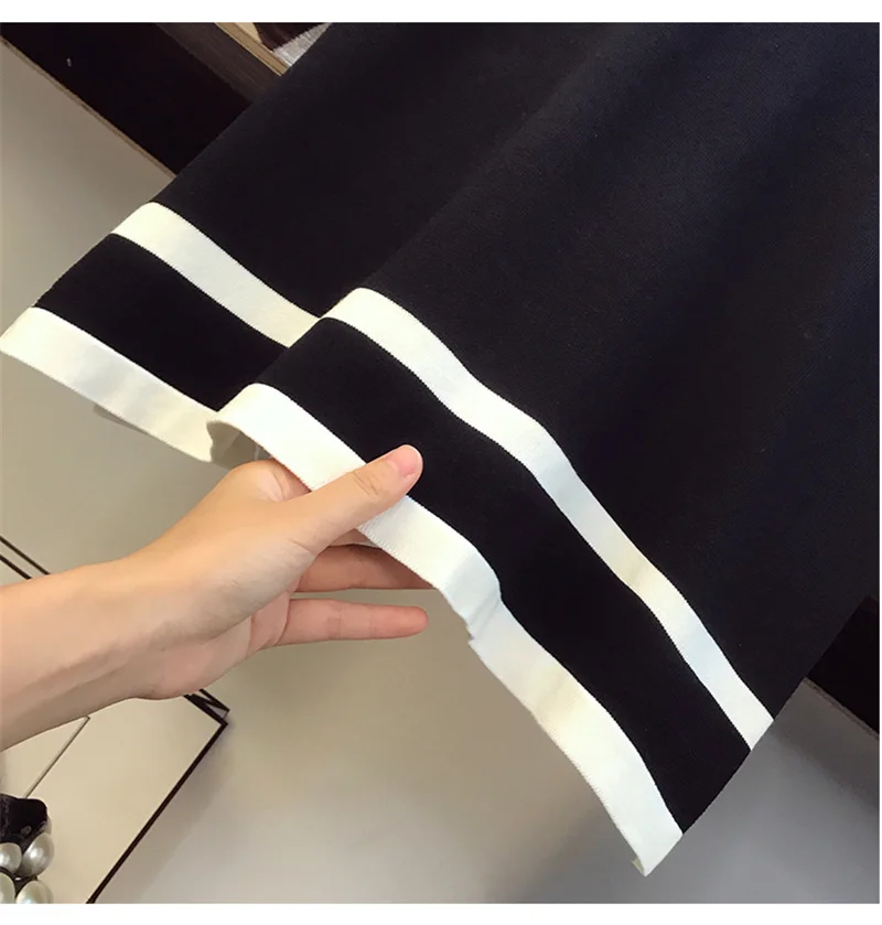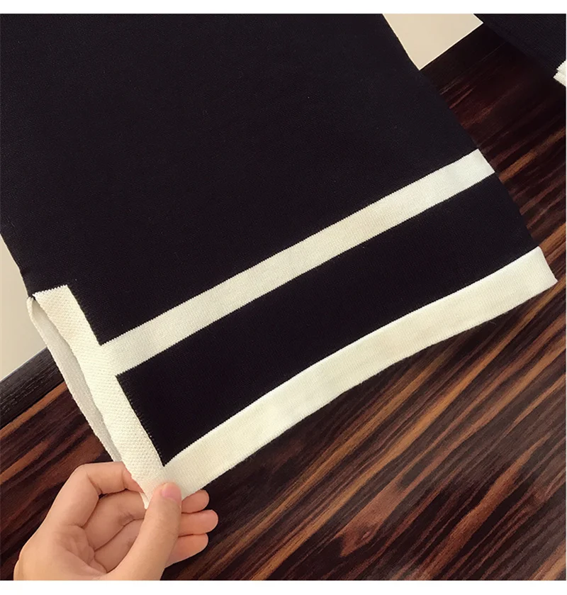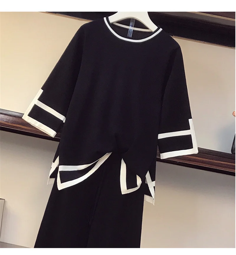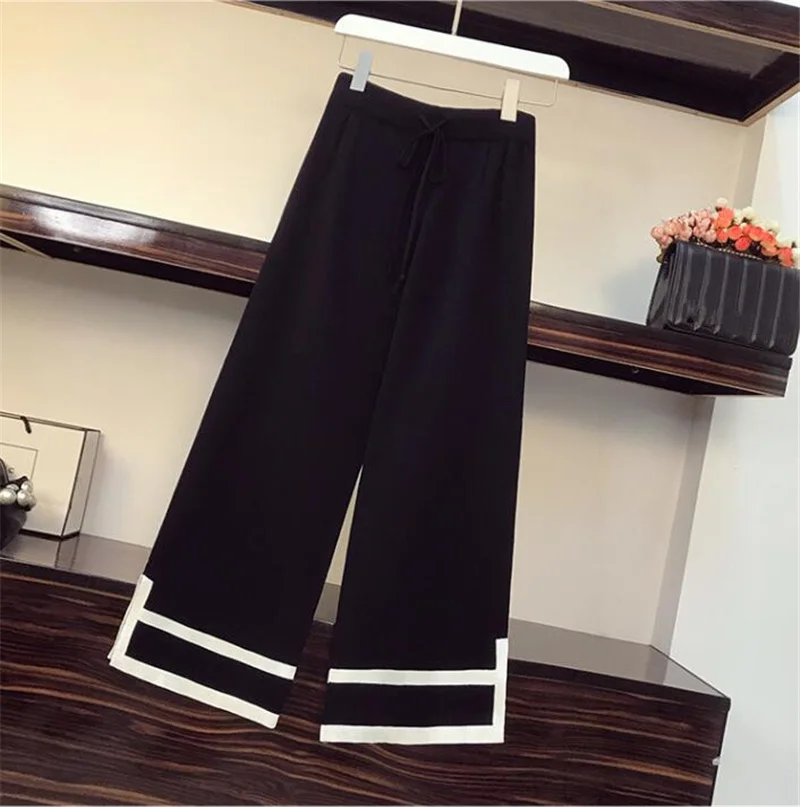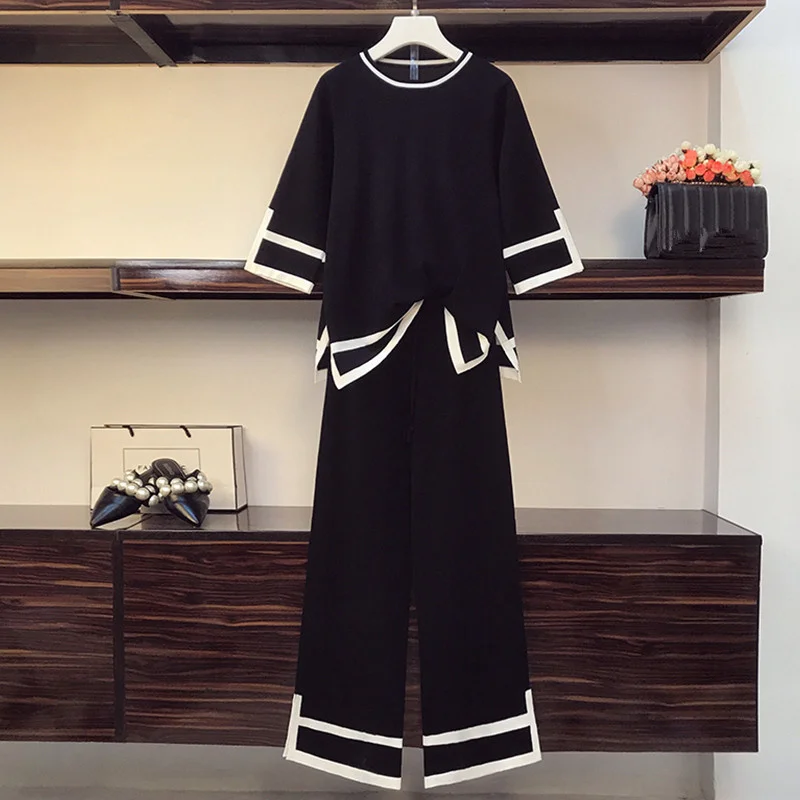 Summer Women's Knitted Two Piece Suits Color Contrast Loose Pullover Sweater Jumpers And Wide Leg Pants Plus Szie Outfits