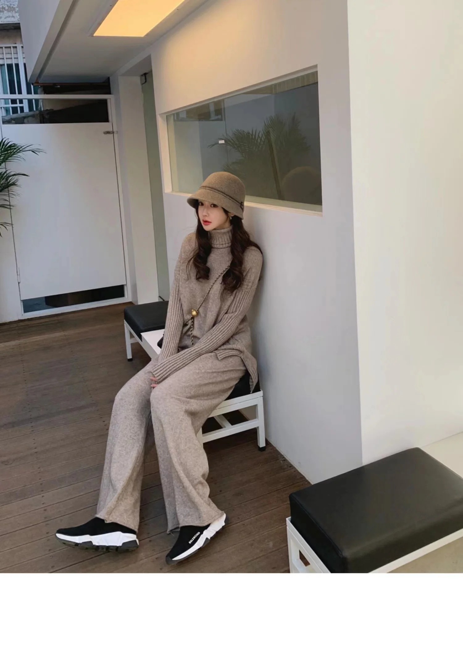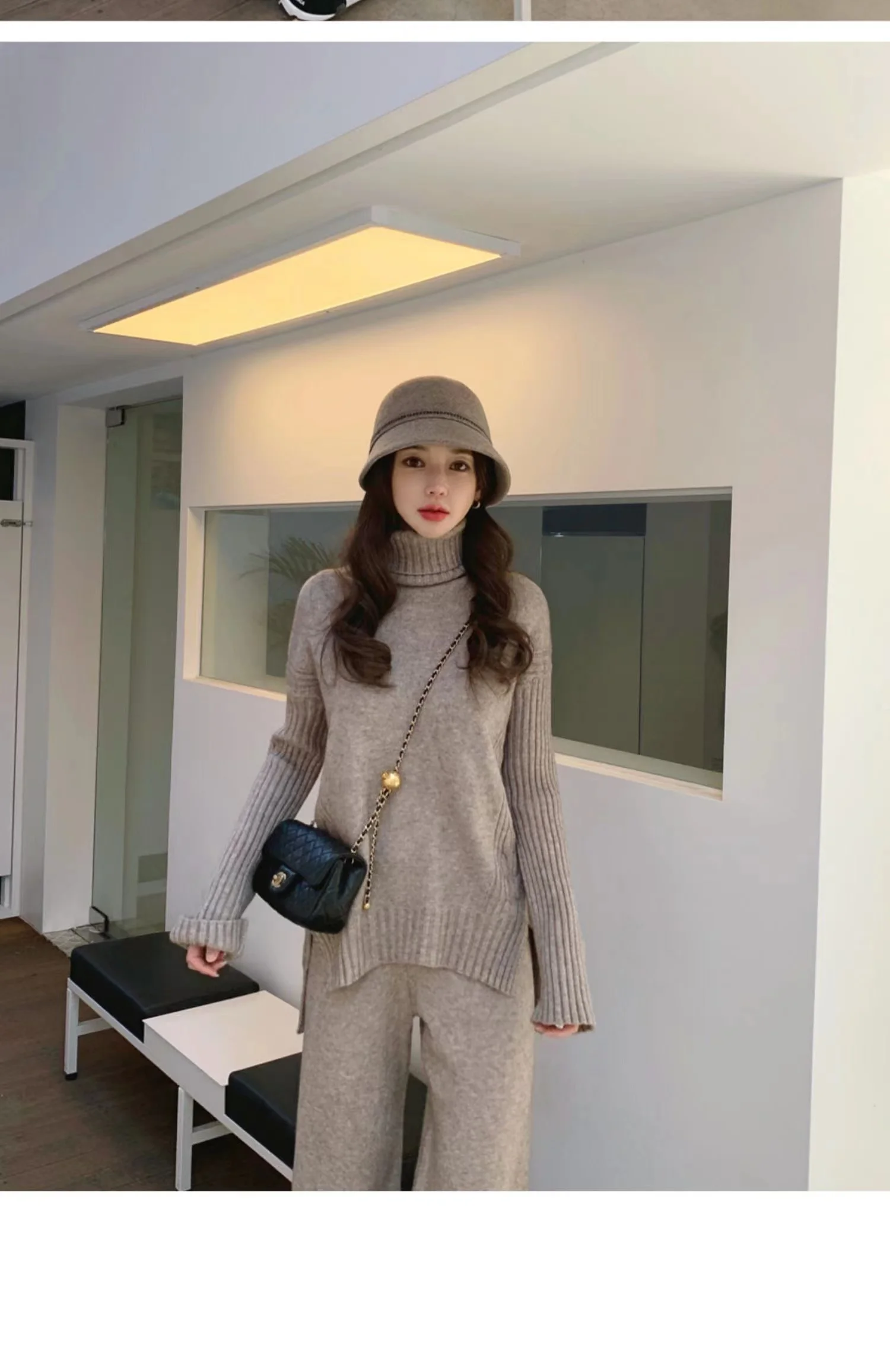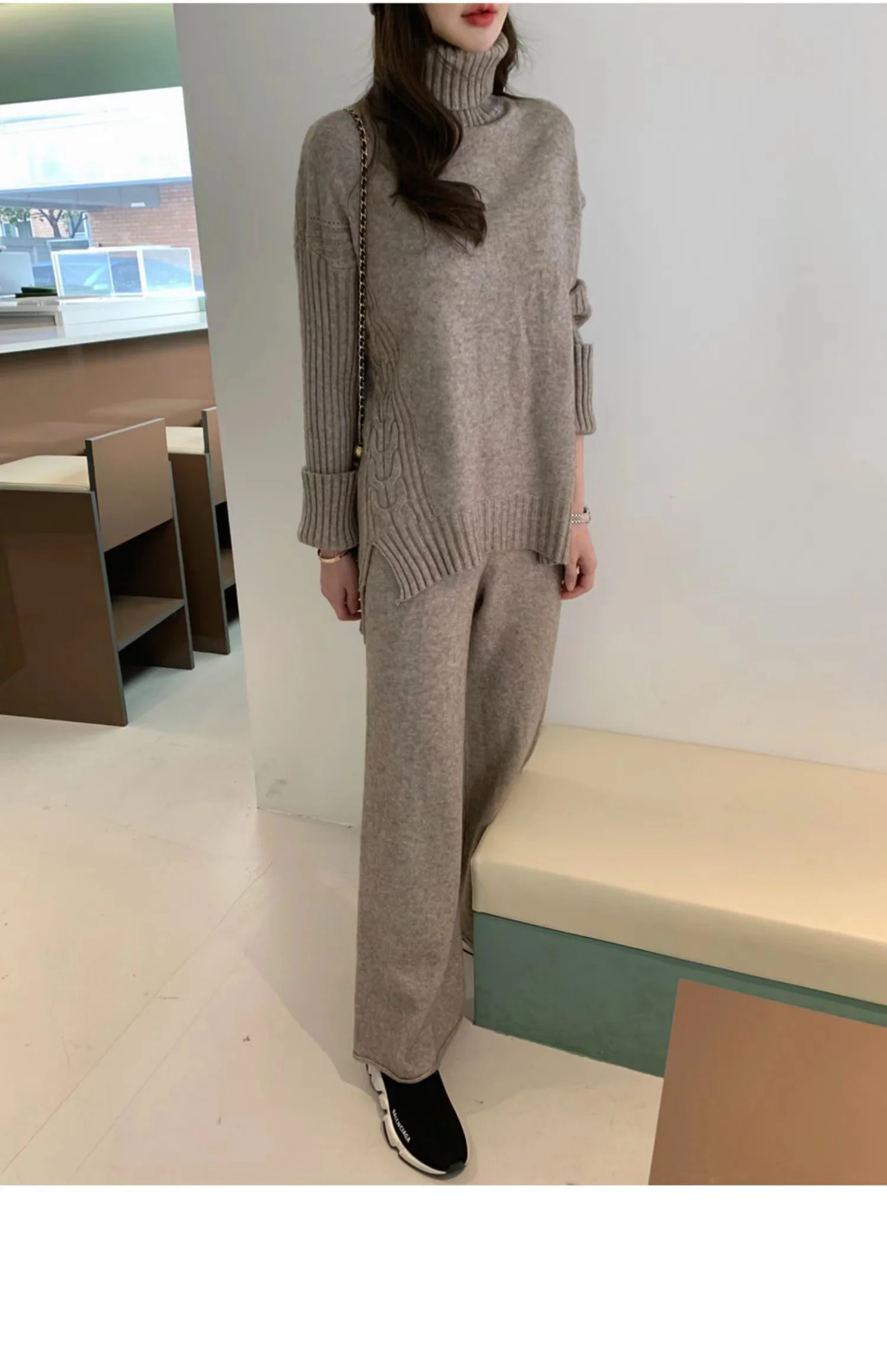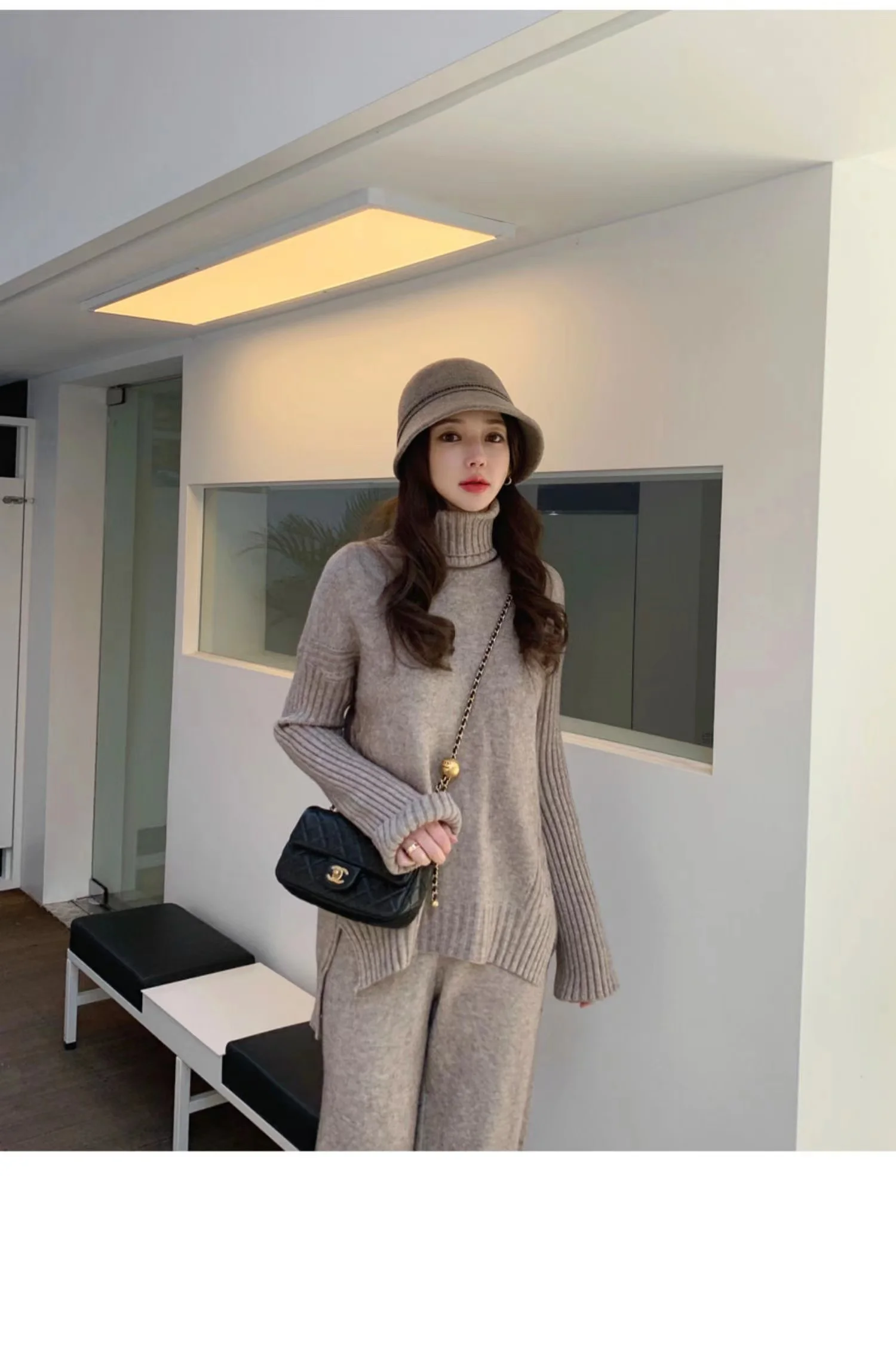 Women's Turtleneck SweaterSuit Autumn and Winter theNew Cashmere Sweater Knitted Wide-Leg PantsFashionable StylishTwo-Piece Suit