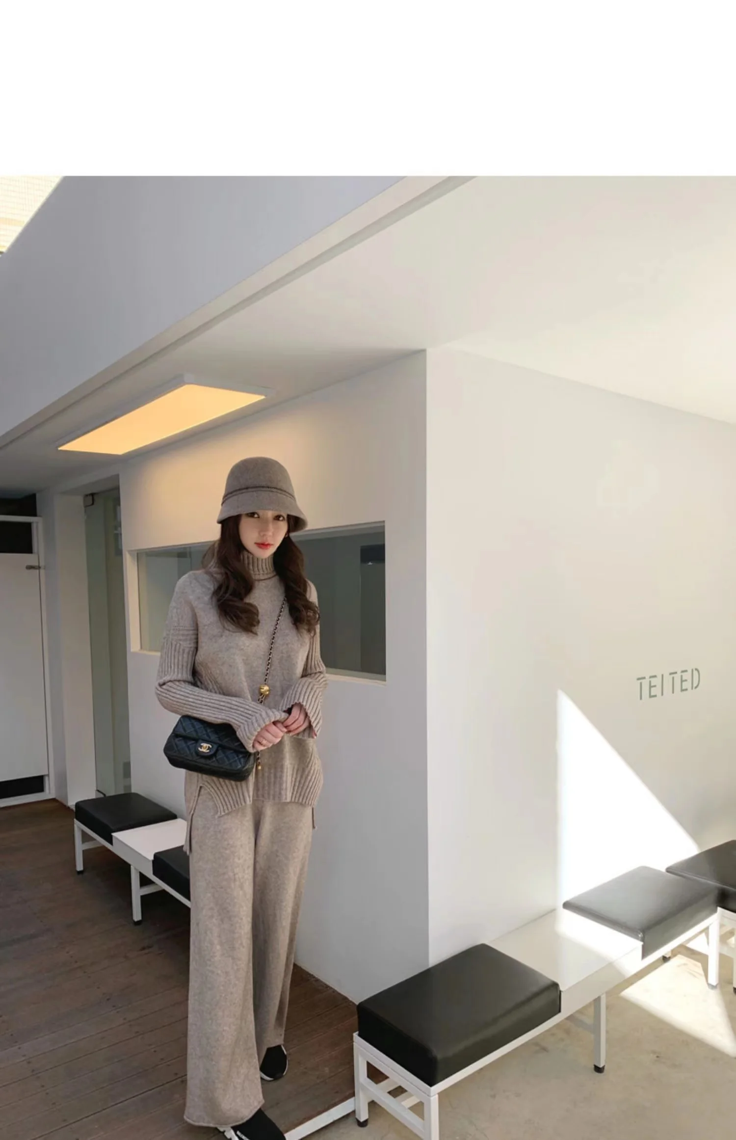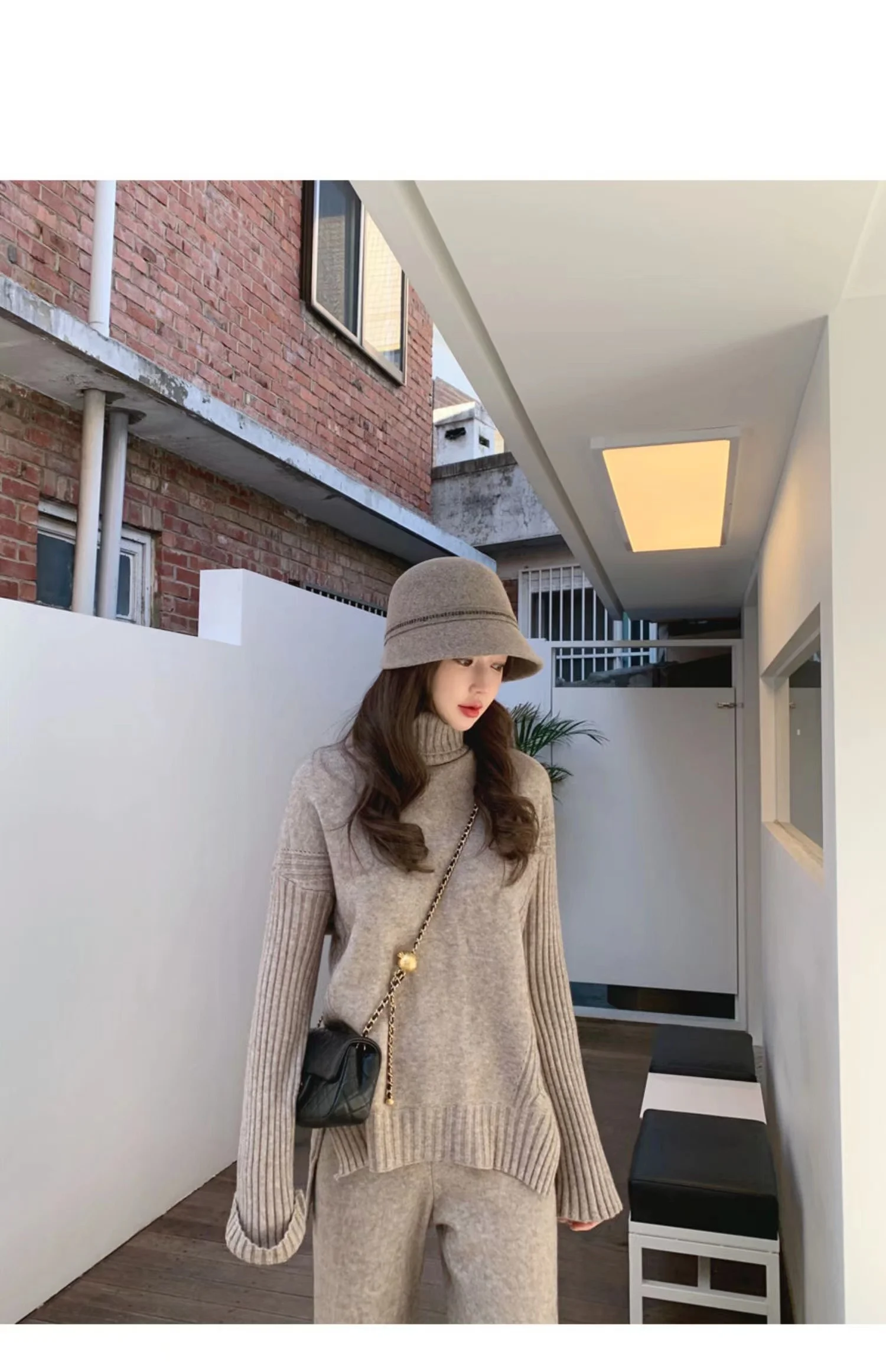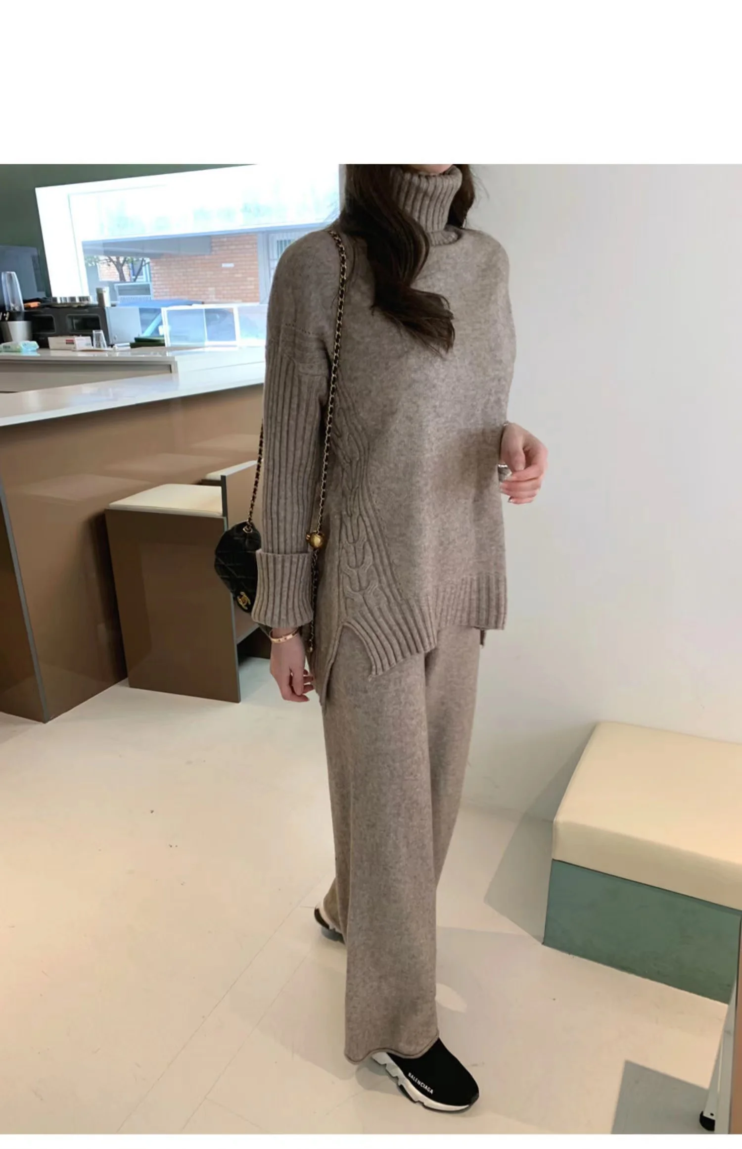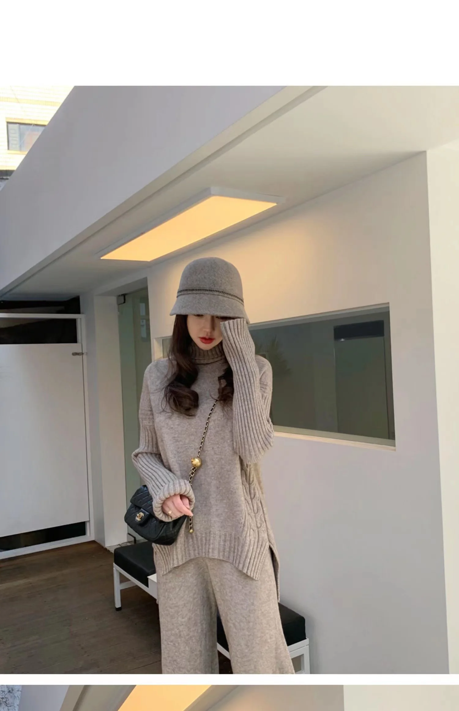 Women's Turtleneck SweaterSuit Autumn and Winter theNew Cashmere Sweater Knitted Wide-Leg PantsFashionable StylishTwo-Piece Suit
