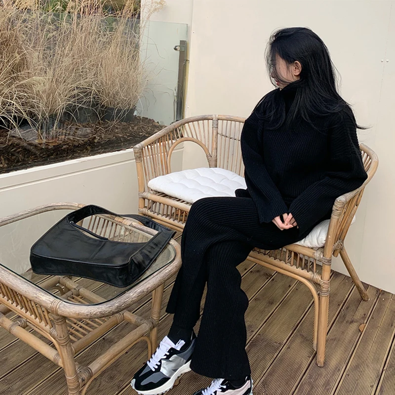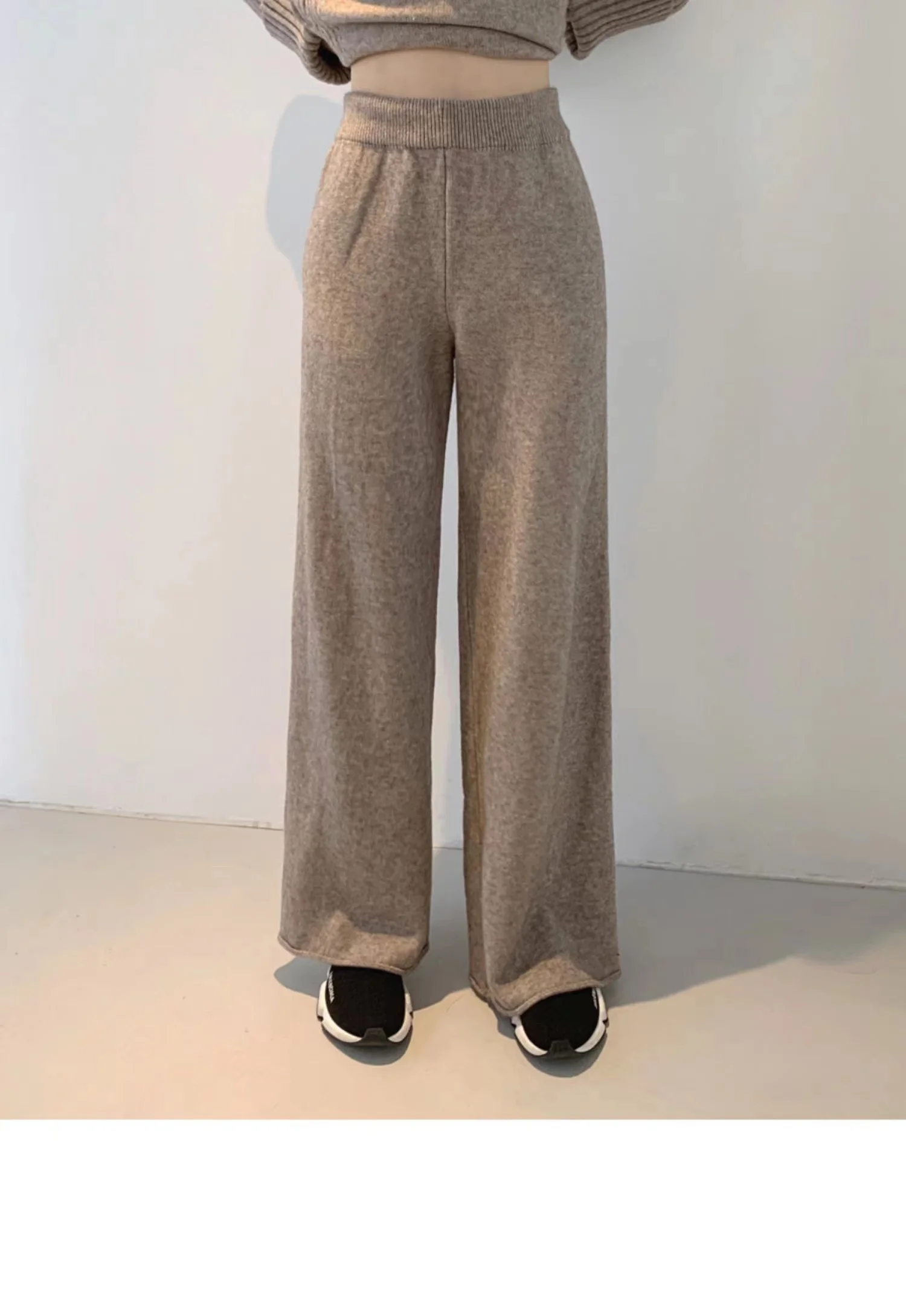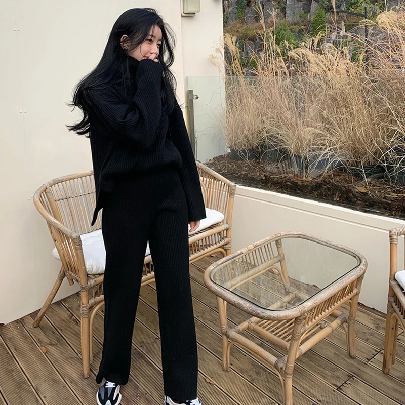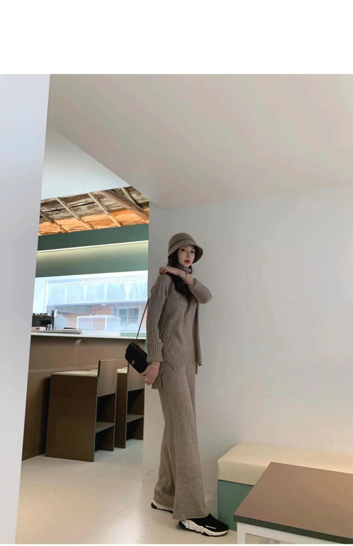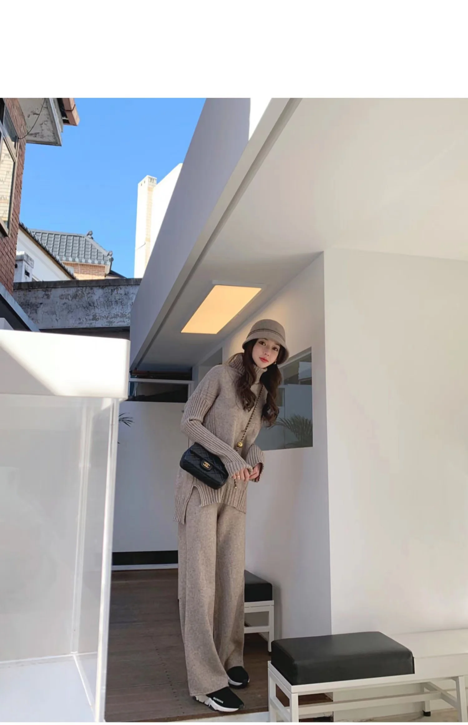 Women's Turtleneck SweaterSuit Autumn and Winter theNew Cashmere Sweater Knitted Wide-Leg PantsFashionable StylishTwo-Piece Suit