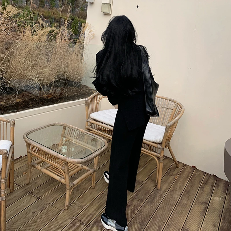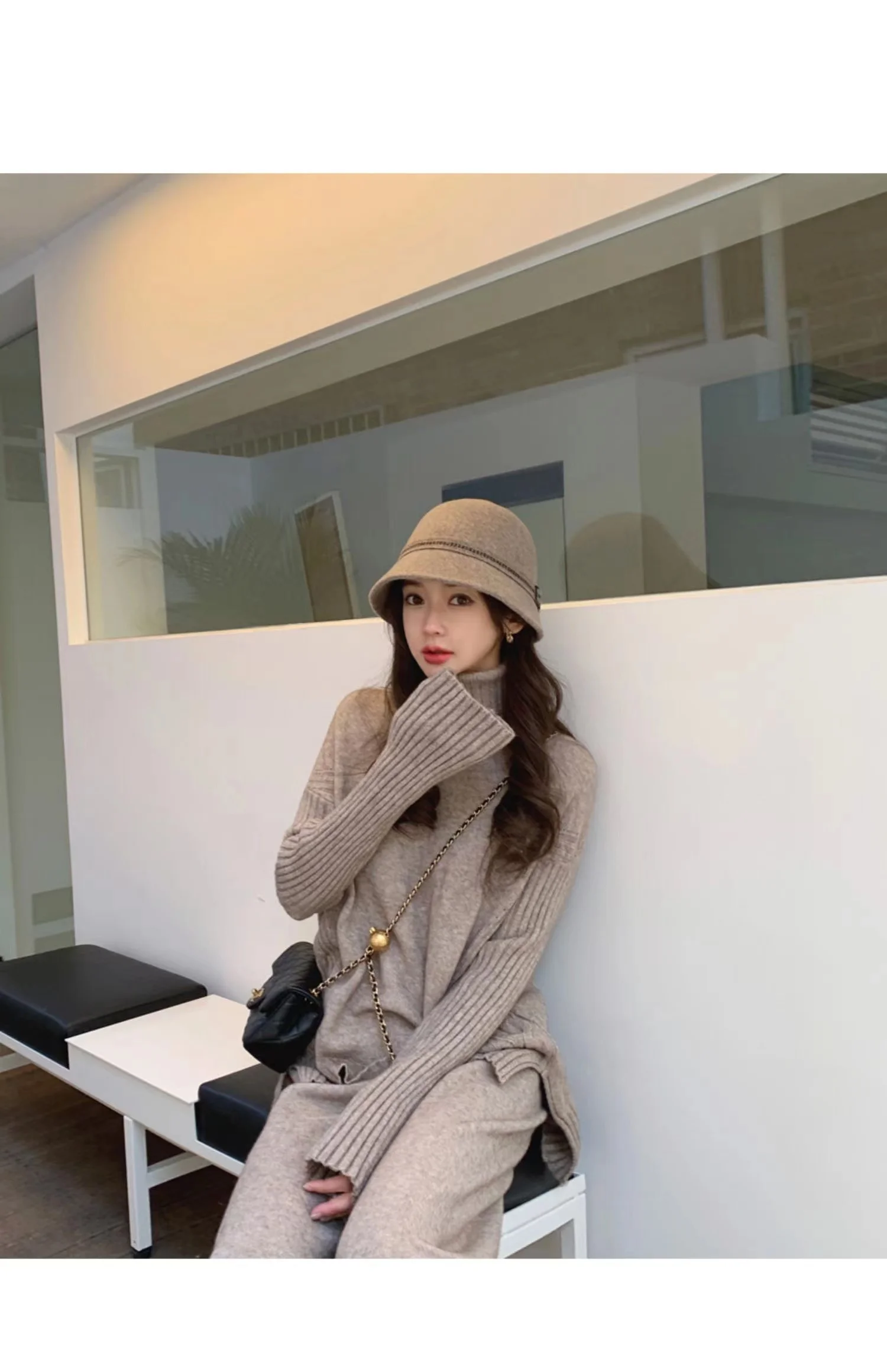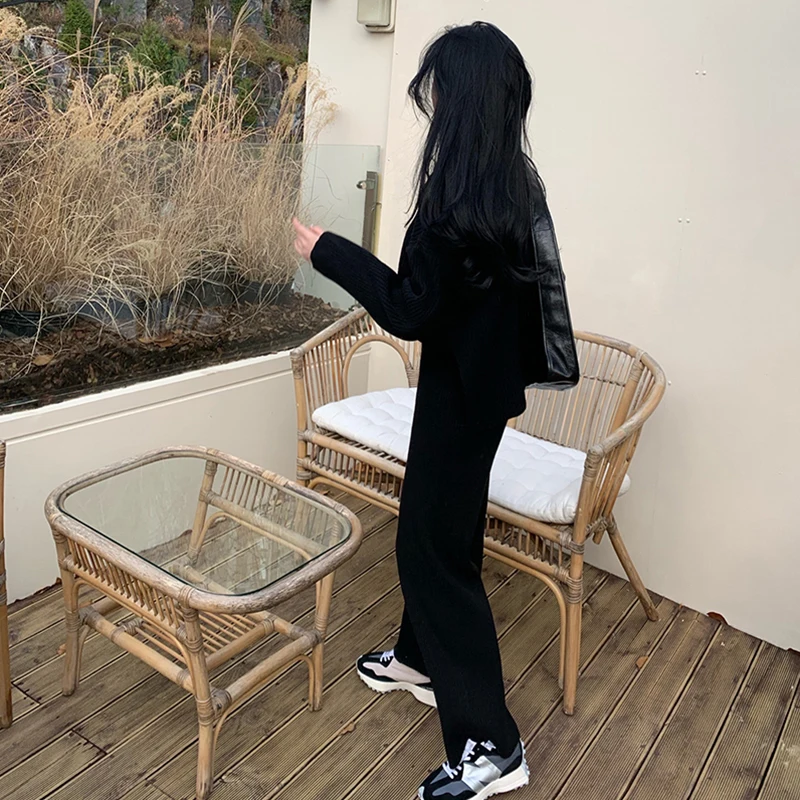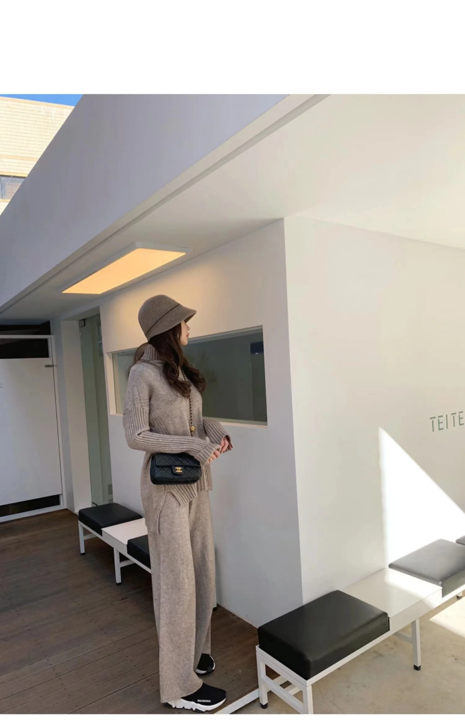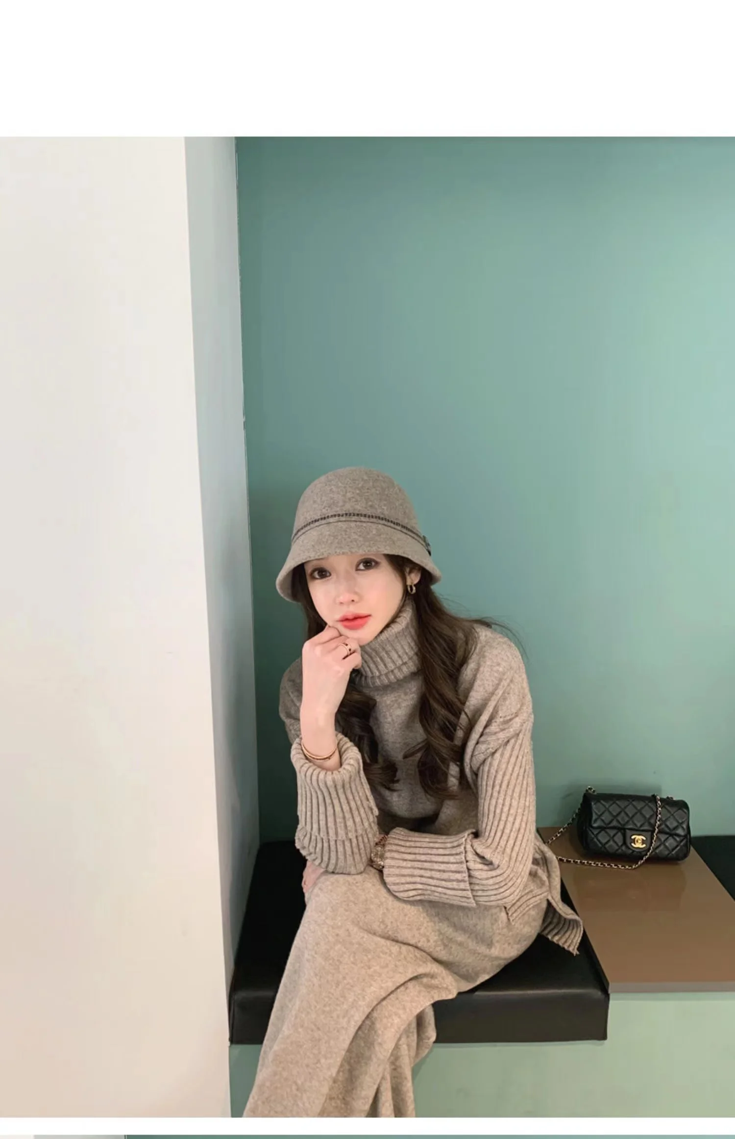 Women's Turtleneck SweaterSuit Autumn and Winter theNew Cashmere Sweater Knitted Wide-Leg PantsFashionable StylishTwo-Piece Suit